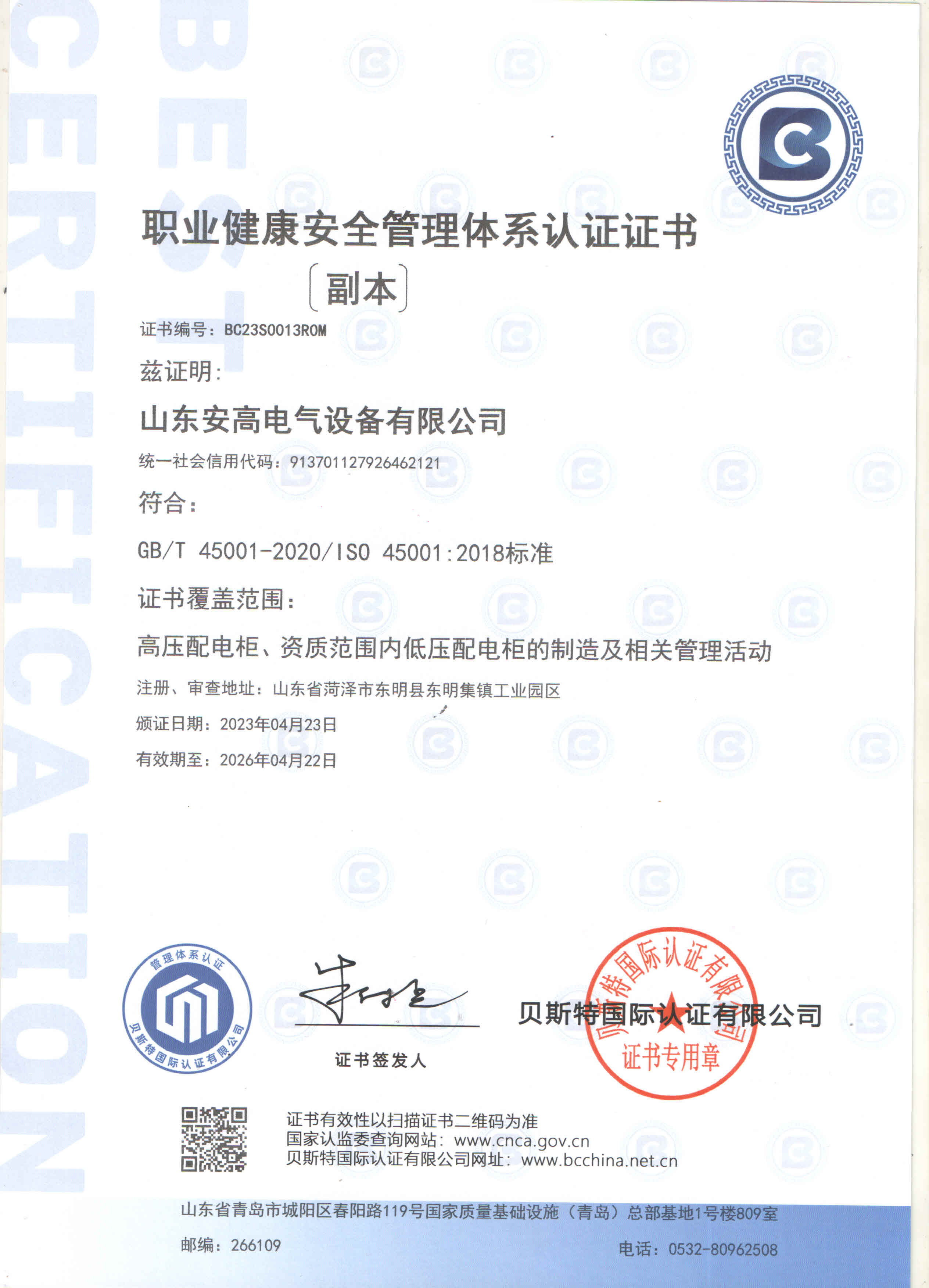 安高經(jīng)過了多年磨練,先后榮獲“守合同重信用企業(yè)”、“專精特新”中小企業(yè)、“質(zhì)量、服務(wù)、信譽(yù)AAA企業(yè)”、“國家合格評(píng)定質(zhì)量信得過產(chǎn)品”、“山東省高新技術(shù)企事業(yè)”等多項(xiàng)榮譽(yù)稱號(hào)。